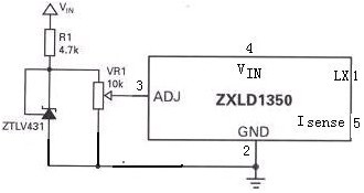 圖1是以ZETEX的ZXLD1350驅動器為例的典型直流電壓調光示意圖。